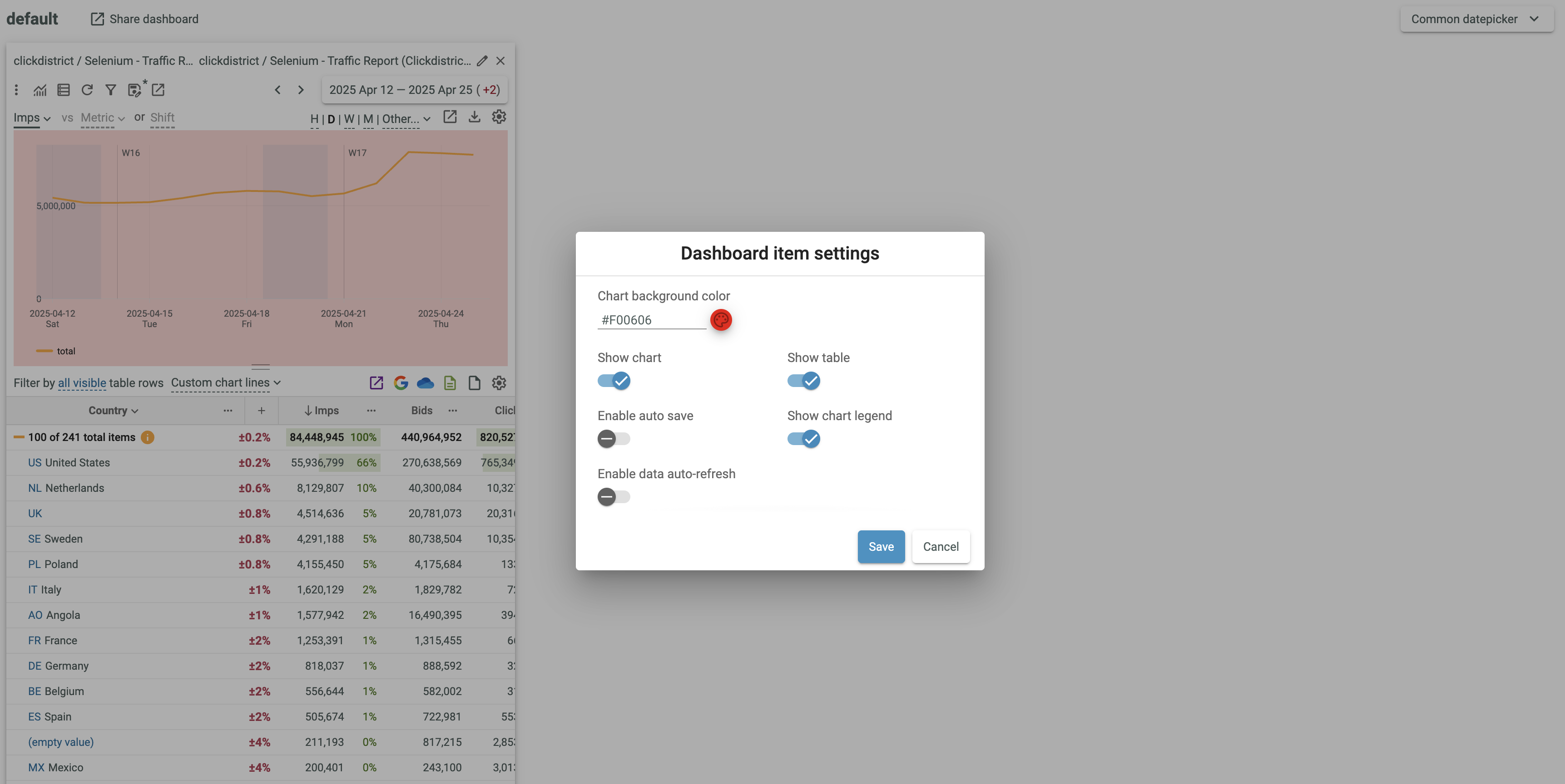 - Switch on/off the Show chart legend option.