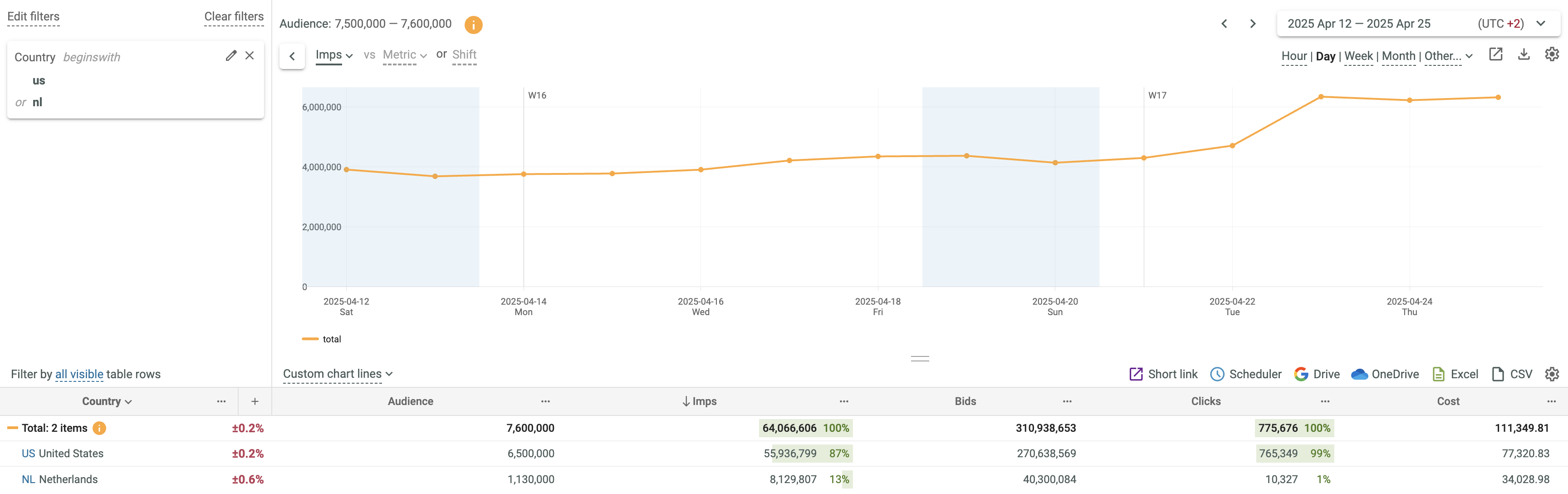 - See that the advanced filter is applied to the NL, DE and SE key field values.